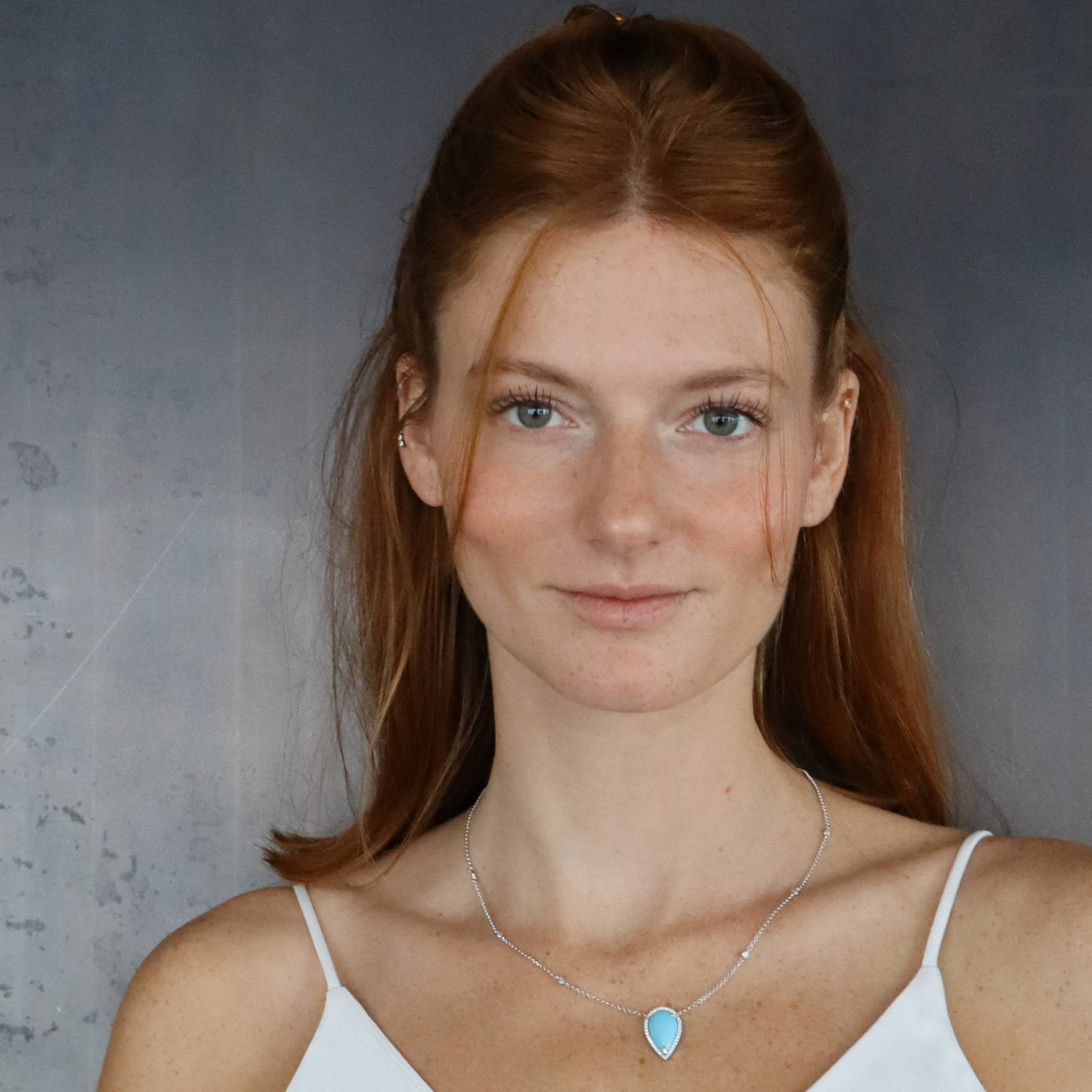 שרשרת טיפה עם אבן חן טורקיז ושיבוץ זרקונים מסביב, עשויה כסף טהור ומגיעה גם בציפוי זהב ורוז גולד