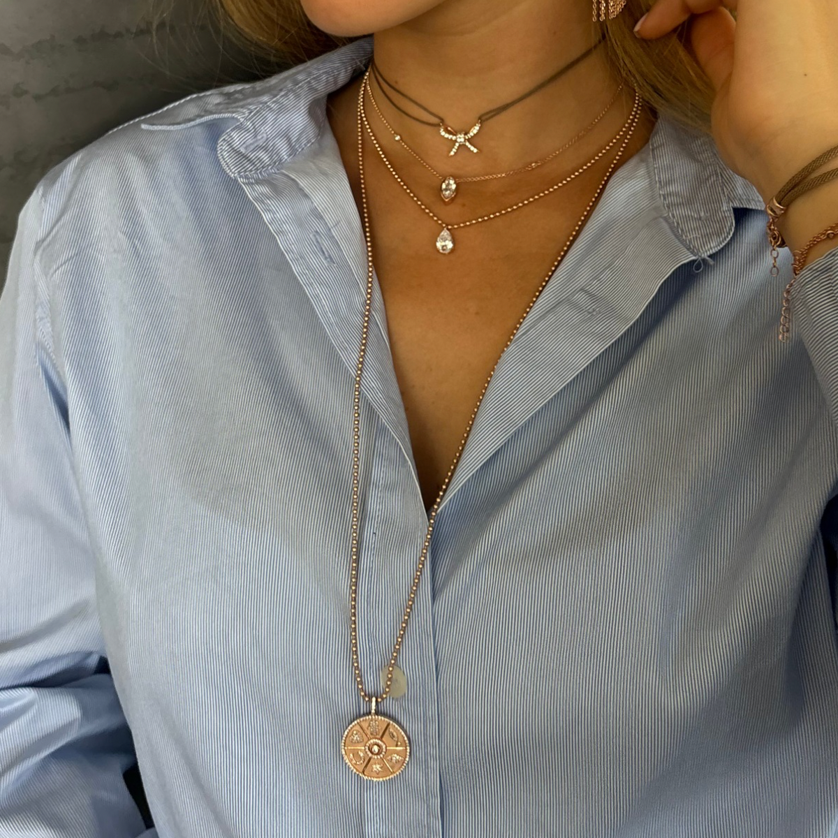 שרשרת מטבע עם מזלות משובצים בזרקונים, השרשרת עשויה כסף טהור ומגיעה גם בציפוי זהב ורוד או זהב צהוב, ניתן לענוד אותה כשרשרת ארוכה או כקצרה וללפף פעמיים על הצוואר