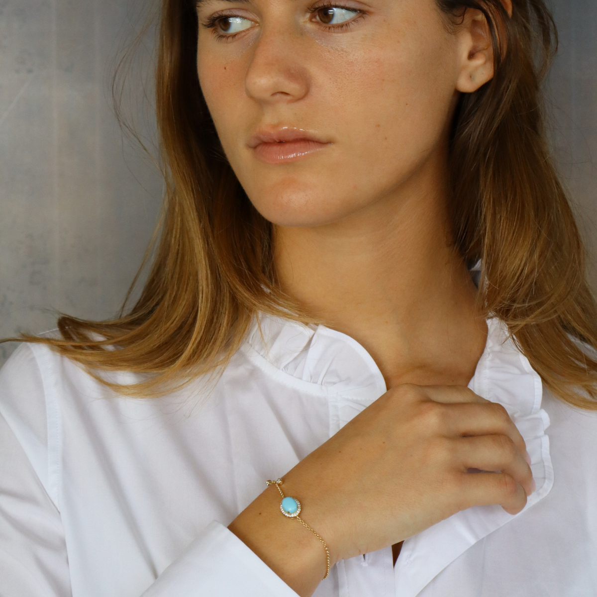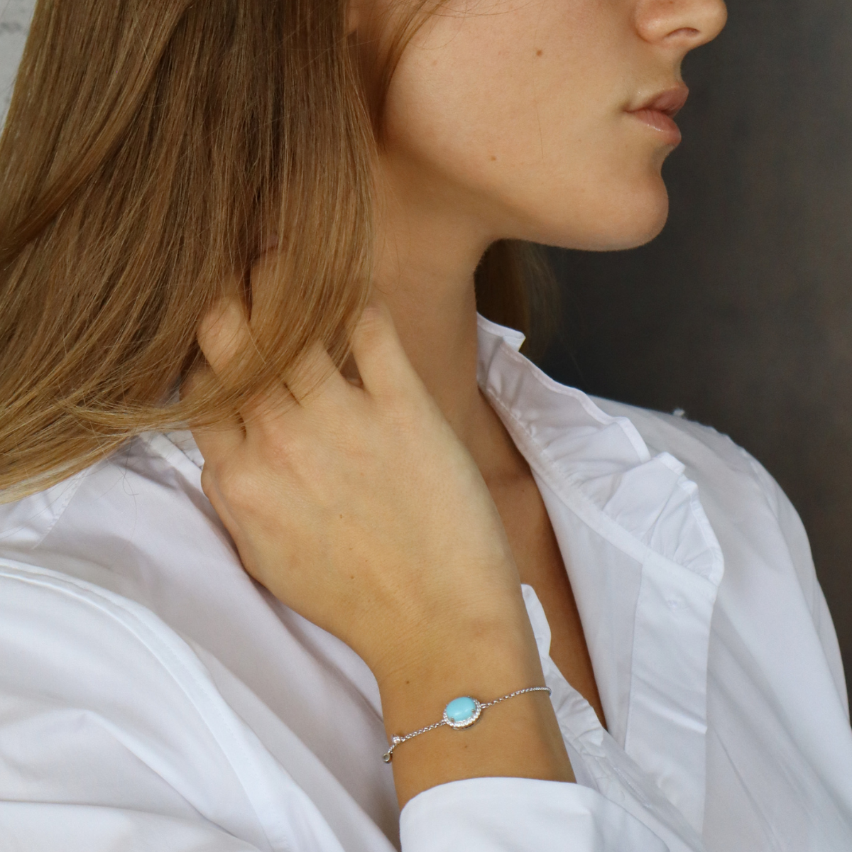 צמיד עם אבן טורקיז מכסף אמיתי, מגיע בכסף, זהב צהוב ורוז גולד