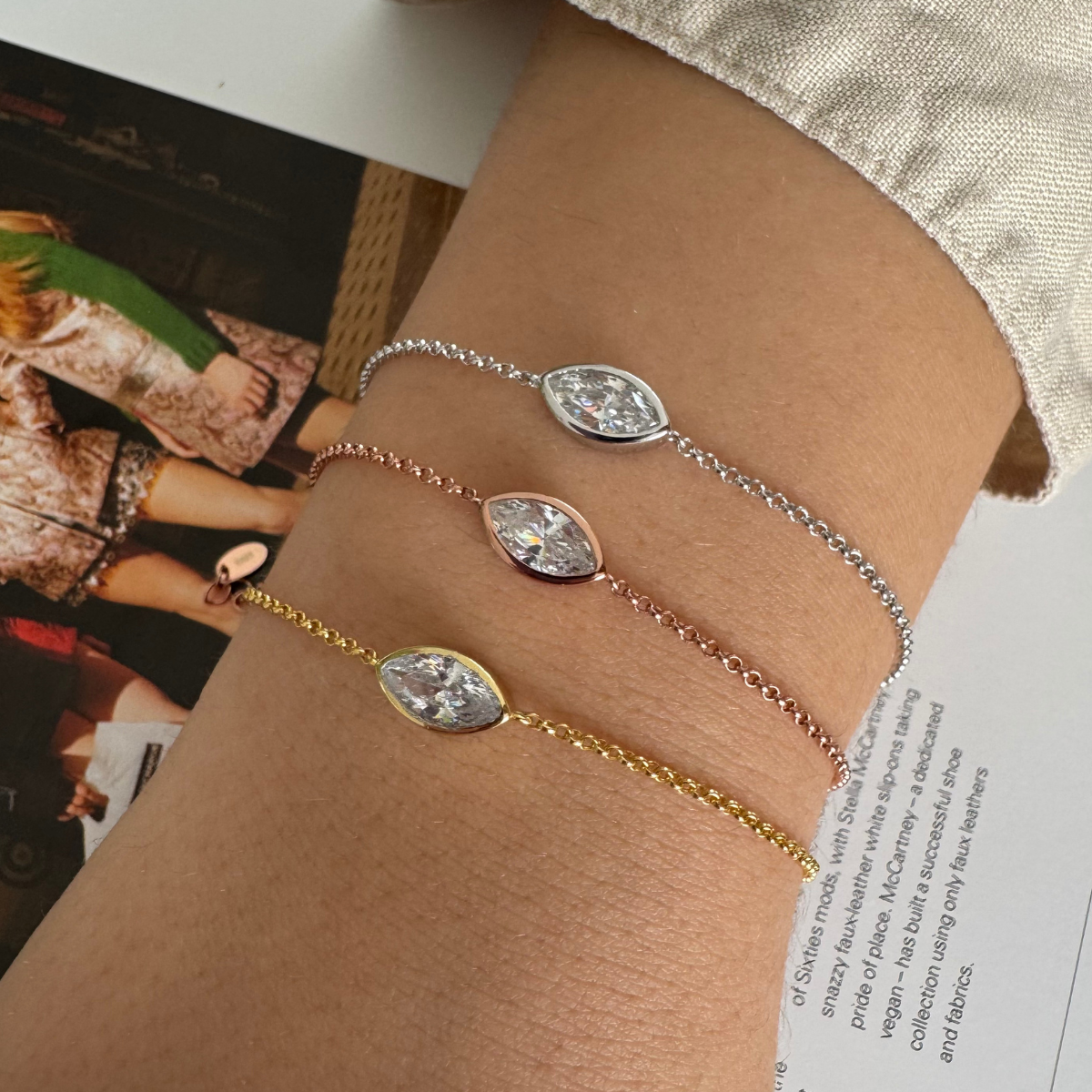 .צמיד זרקון אובל מכסף טהור, מגיע גם בציפוי זהב ורוז גולד