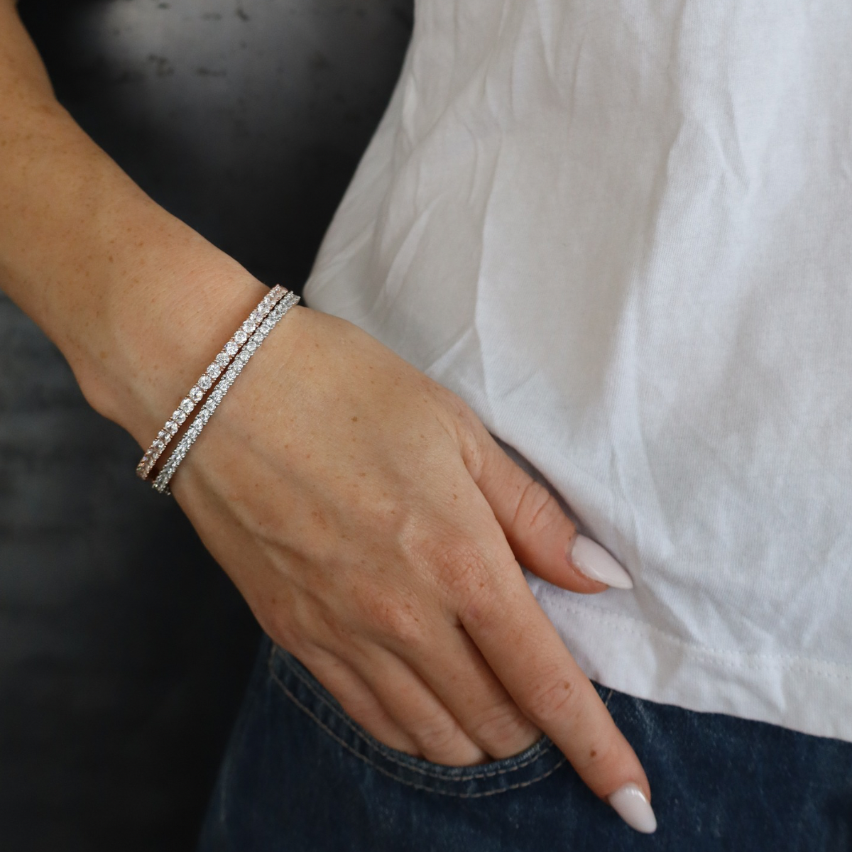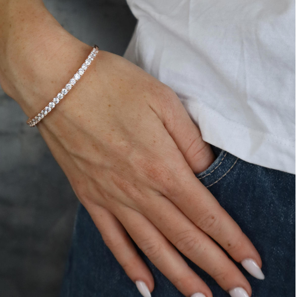 צמיד טניס קשיח רחב מכסף אמיתי, מגיע בכסף או רוז גולד