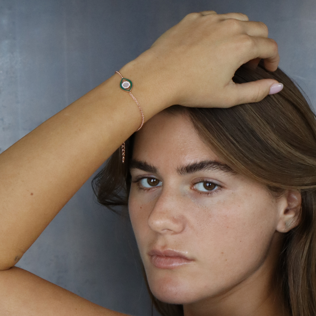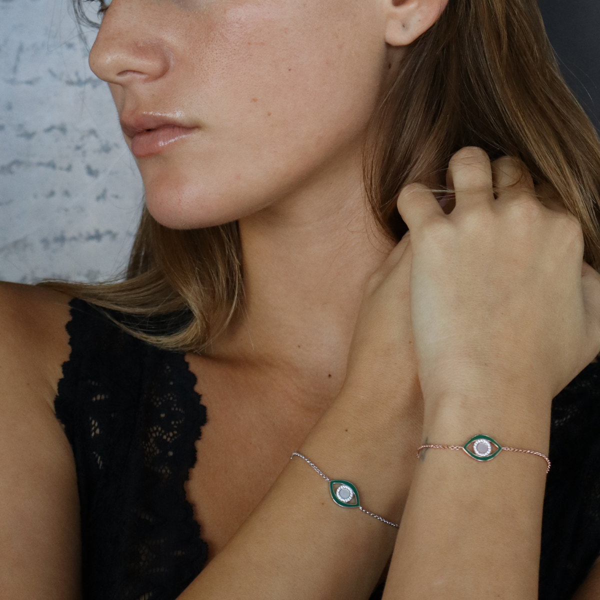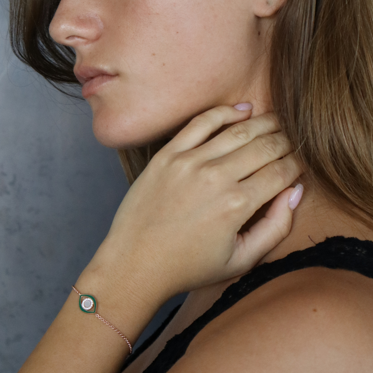 צמיד עין ירוקה מכסף אמיתי, מגיע בכסף, זהב צהוב או רוז גולד.