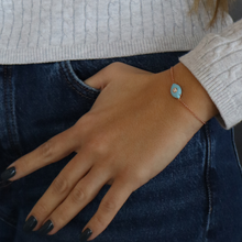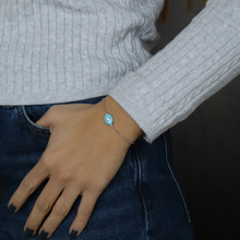 צמיד עין טורקיז עם אבן שקופה באמצע, עשוי כסף אמיתי ומגיע בצבע כסף או ציפוי רוז גולד
