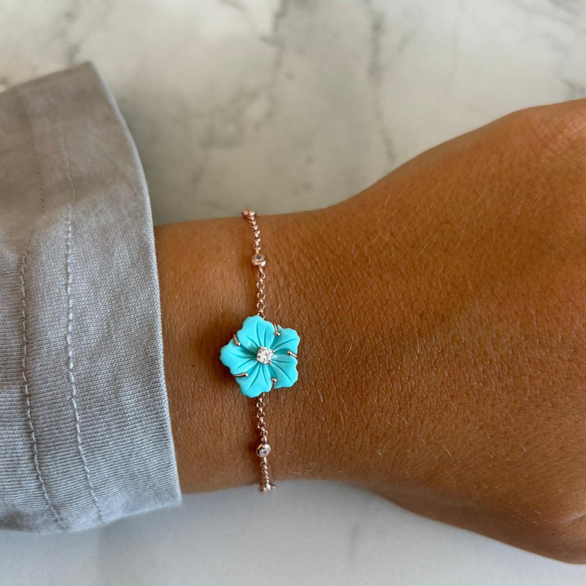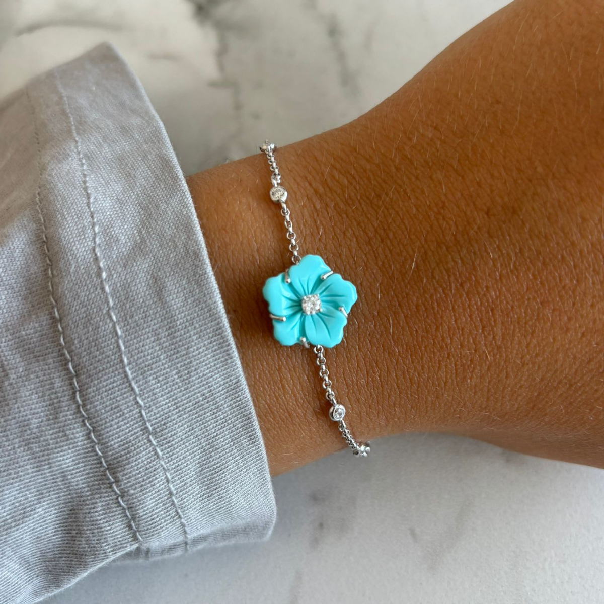 צמיד צדף טורקיז מכסף אמיתי וזרקונים, מגיע גם בציפוי רוז גולד