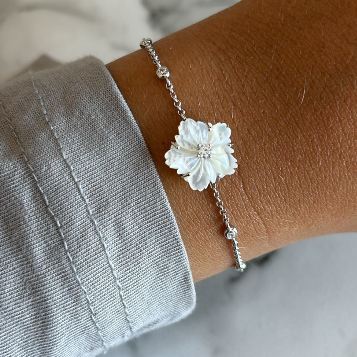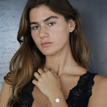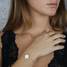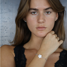 צמיד פרח קטן מכסף עם זרקונים, מגיע בכסף ובציפוי רוז גולד וזהב צהוב