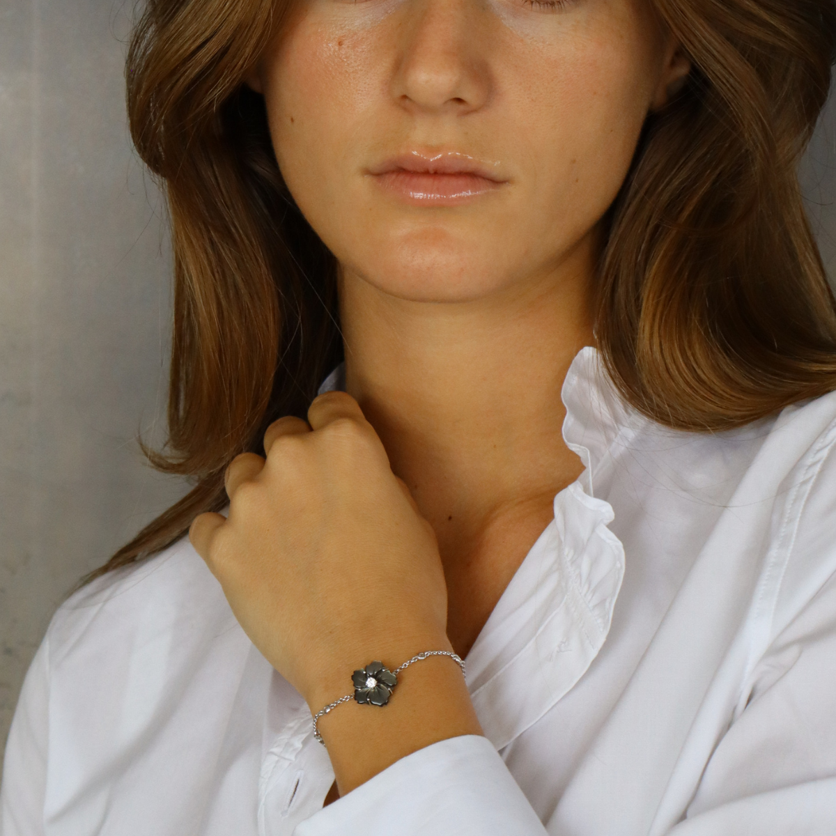 צמיד צדף שחור מכסף אמיתי, מגיע גם בציפוי רוז גולד