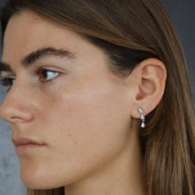 זוג עגילים מכסף אמיתי עם  שלושה זרקונים נופלים. מגיע גם בציפוי זהב צהוב/ רוז גולד.