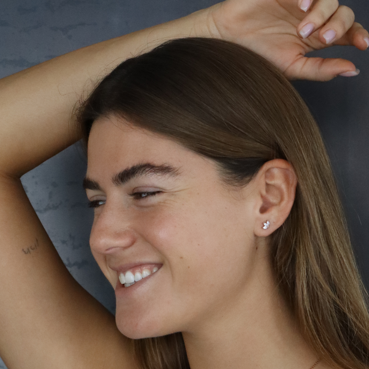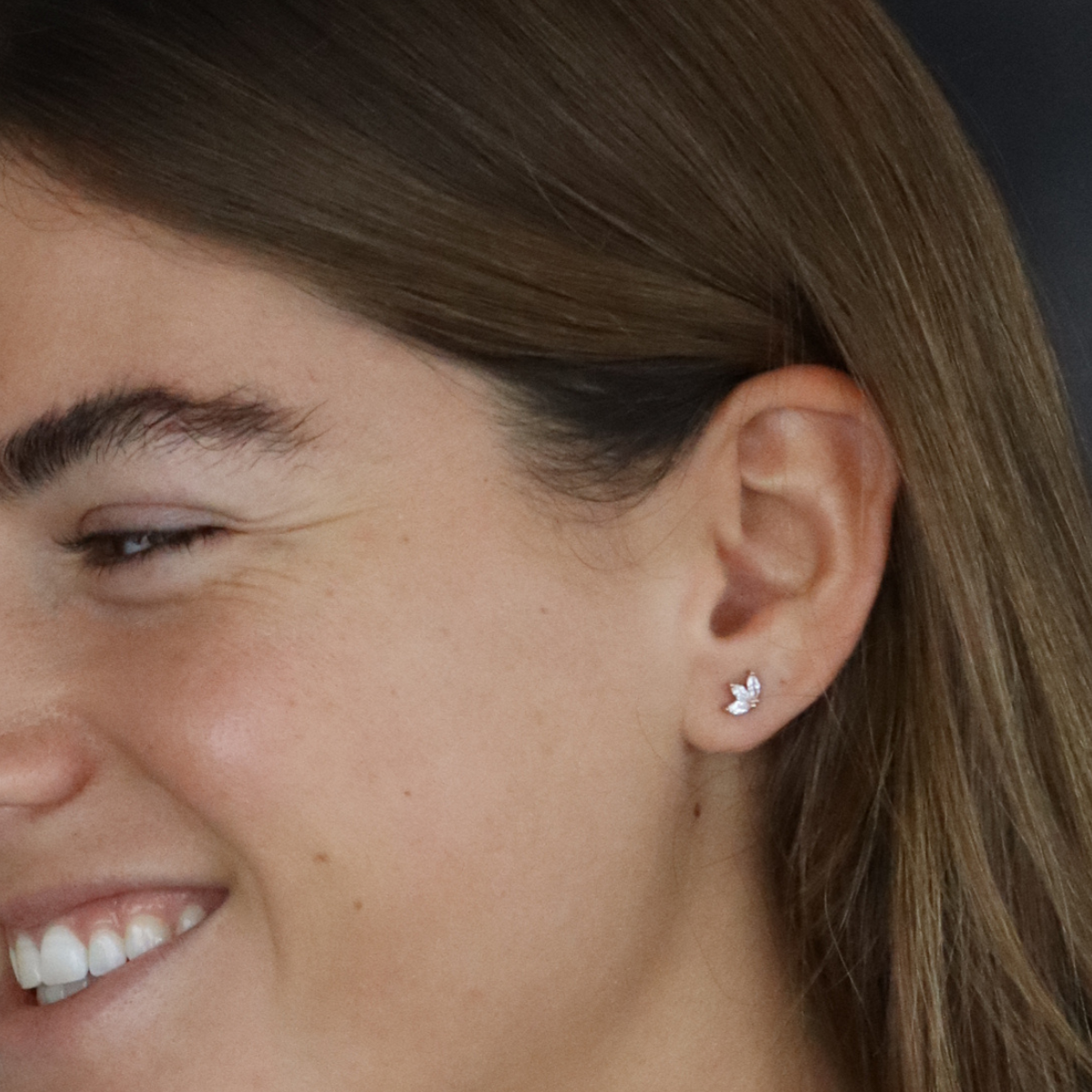 זוג עגילים מכסף טהור בצורת פרח הלוטוס, משובץ בשלושה זרקונים. מגיע בכסף, זהב צהוב ורוז גולד.