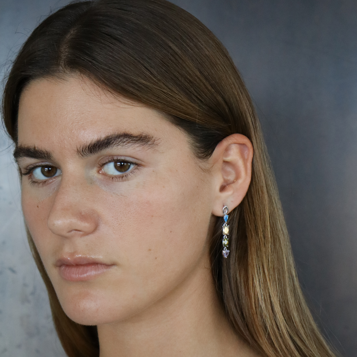 עגילי ריינבו עגילים מכסף טהור, משולב עם זרקונים נופלים בכל מיני צבעים. יש גם בציפוי  זהב צהוב ורוז גולד.