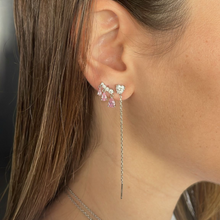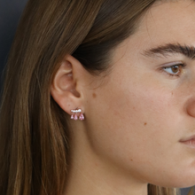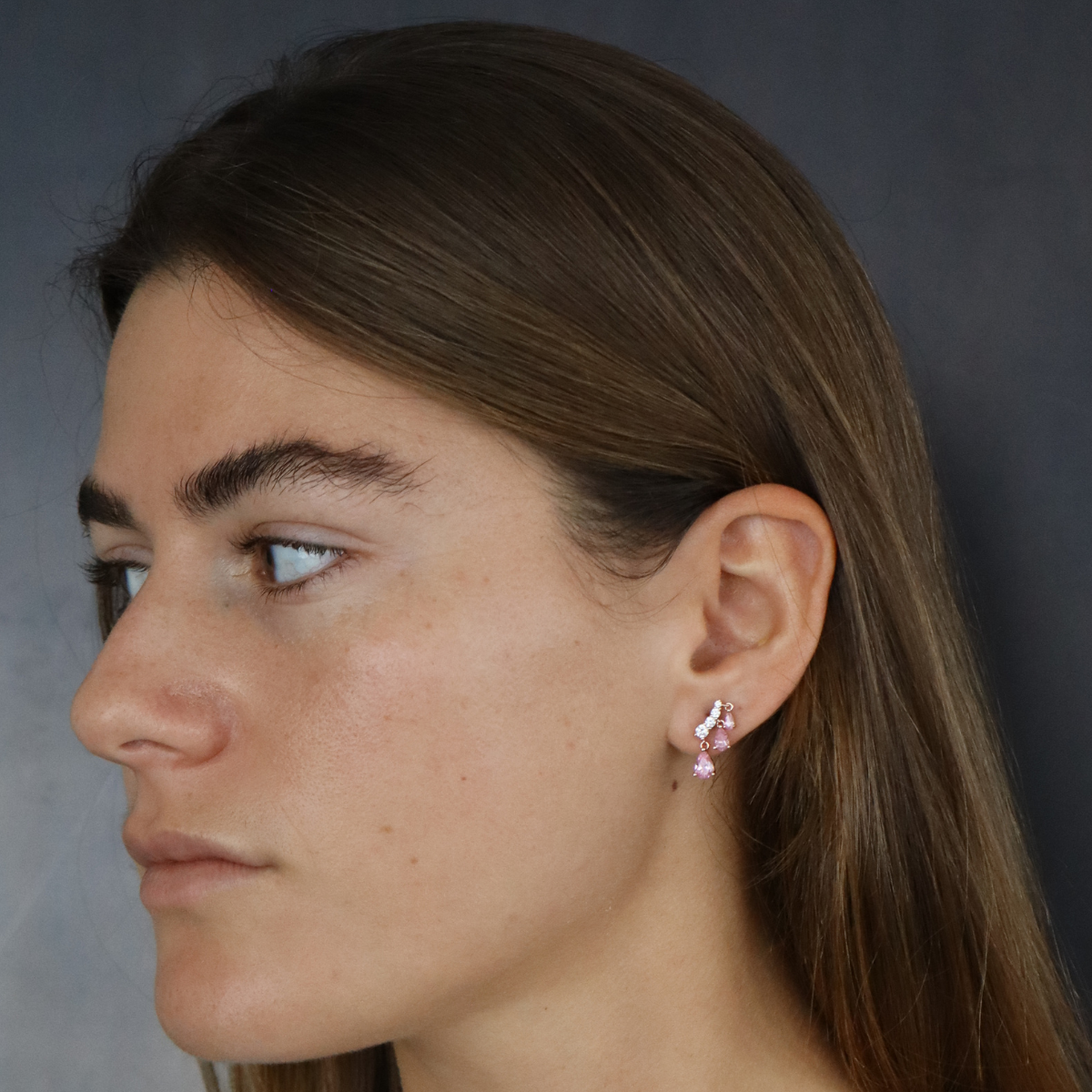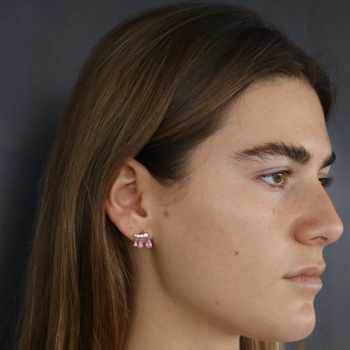 זוג עגילים עם טיפות ורודות נופלות, עשויים כסף אמיתי ומגיע בצבע כסף, זהב צהוב או רוז גולד